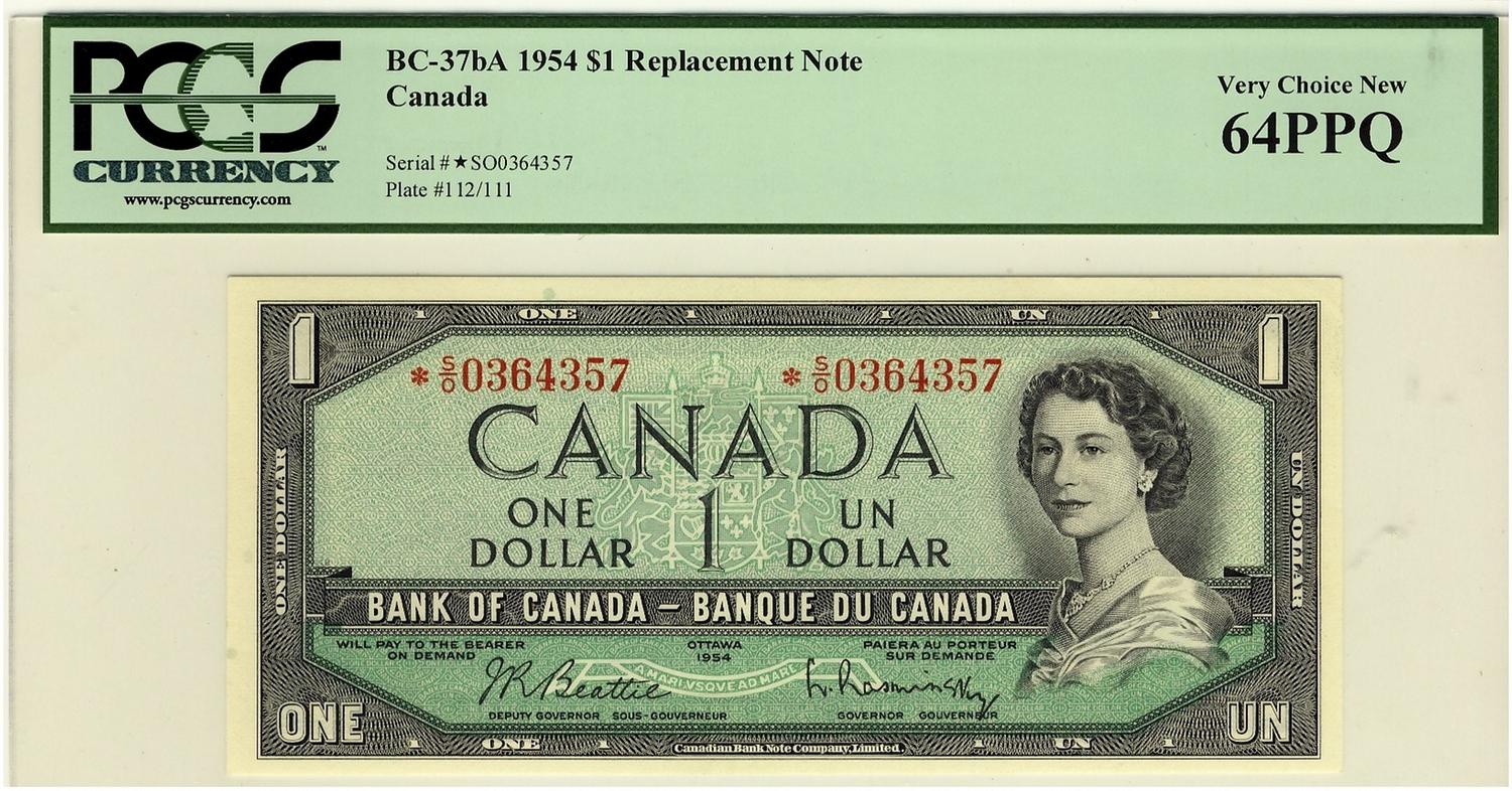 1954 $1 BC-37bA #*S/O0364357 PCGS CH UNC 64PPQ.