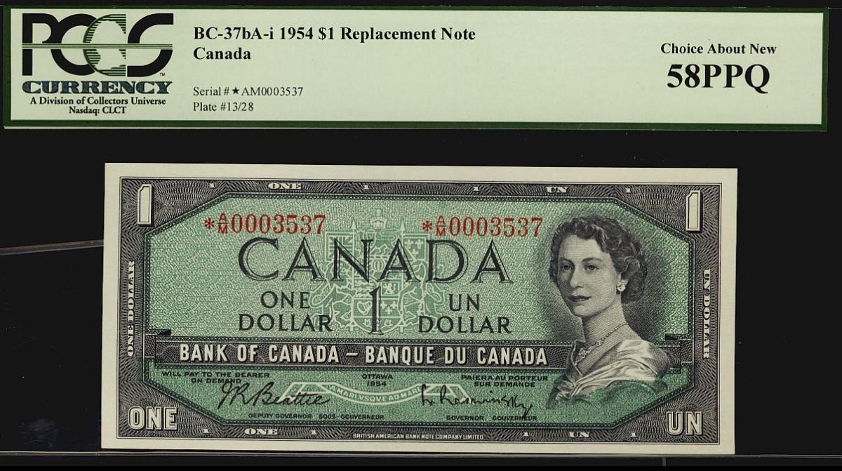 1954 $1 BC-37bA-i PMG AU58. Replacement Note No *A/M 0003537