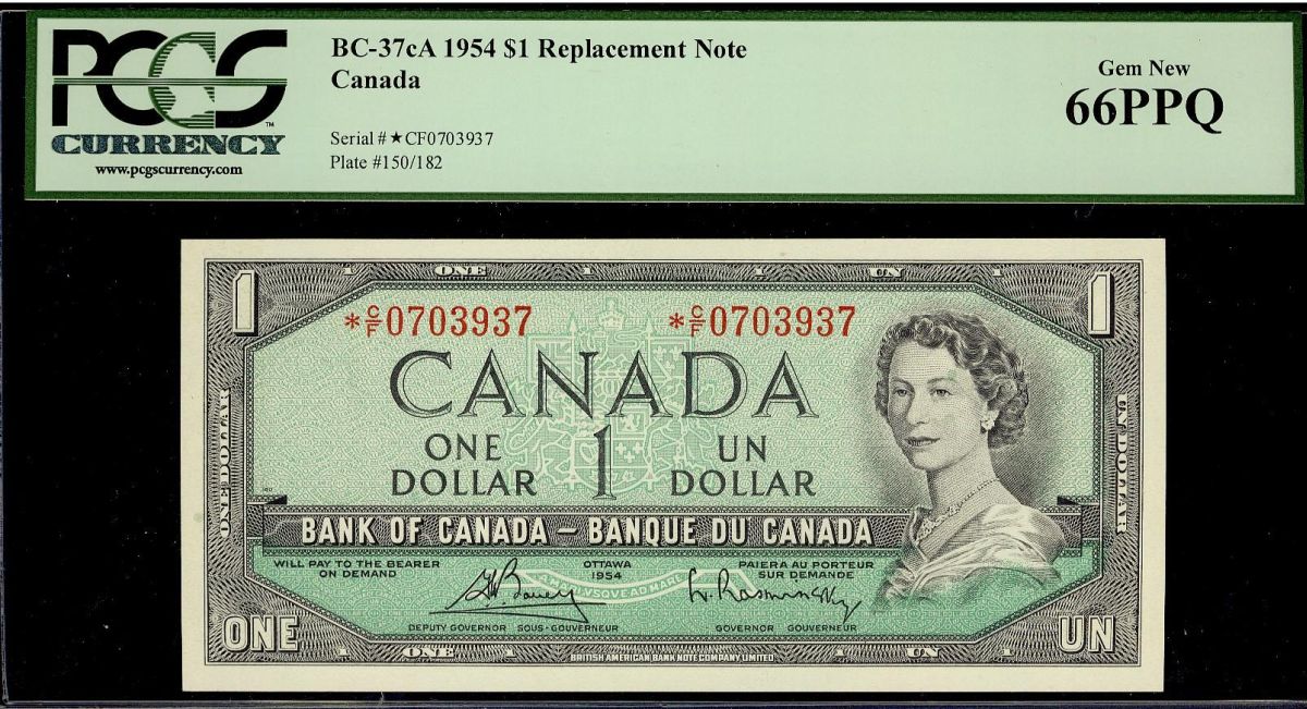 1954 $1 BC-37cA #*C/F0703937 PCGS UNC66PPQ