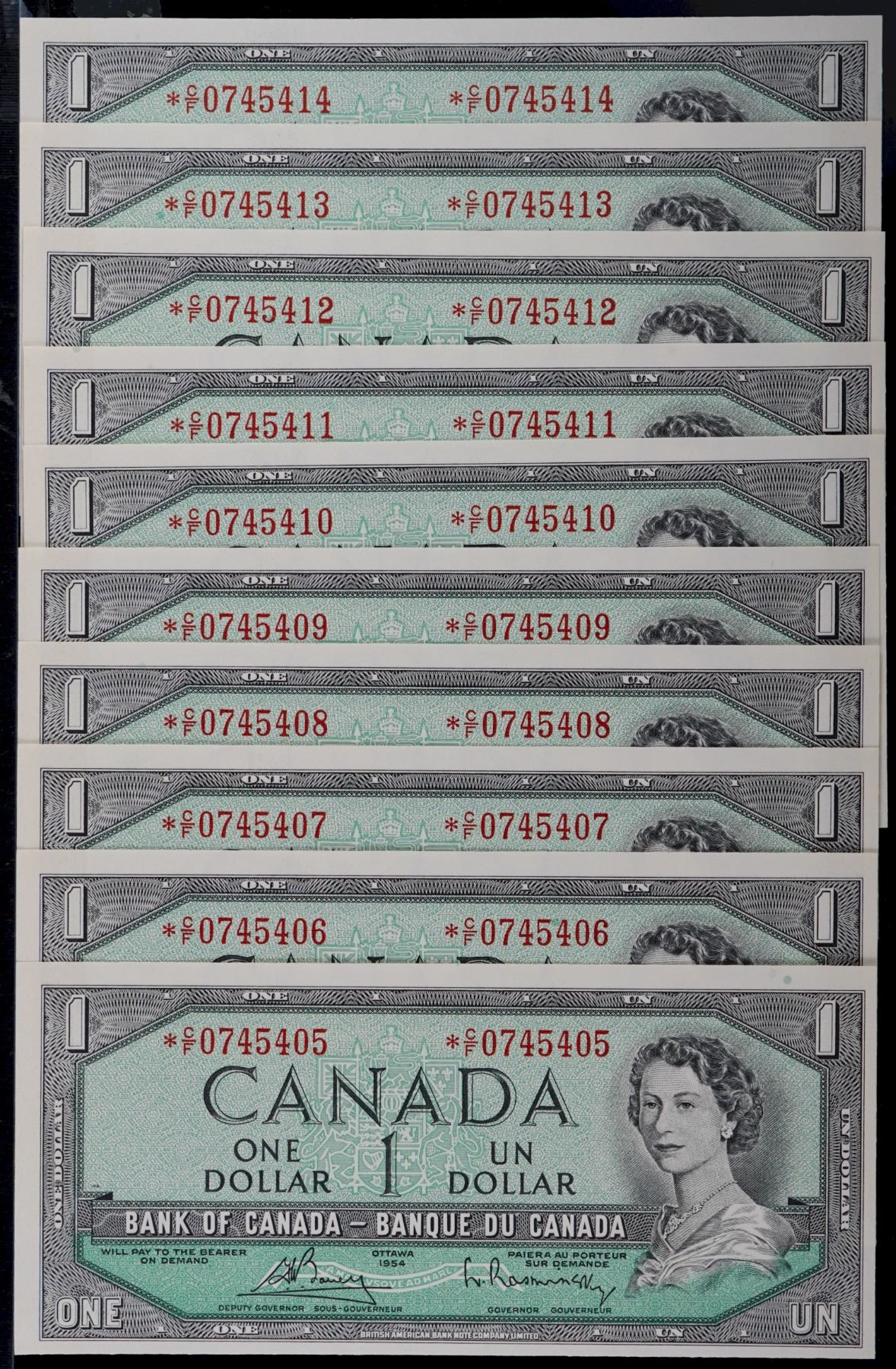 1954 $1 BC-37cA *C/F0745405-414, 10 Consecutive numbered notes. All Choice to Gem Unc.