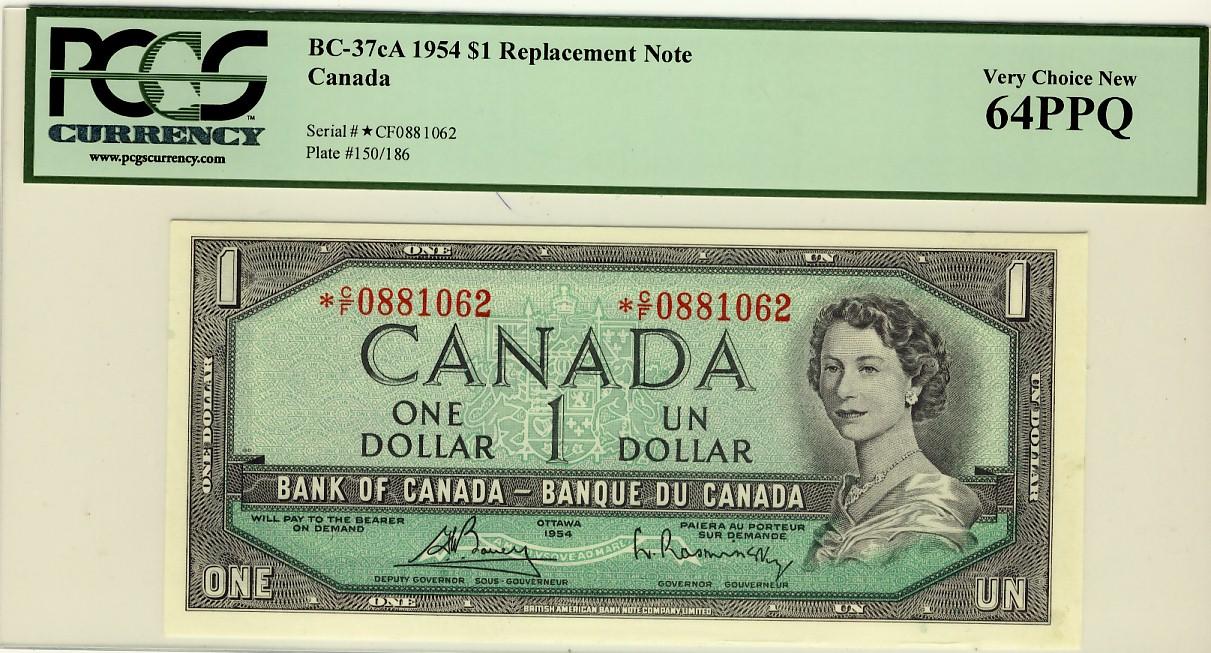 1954 $1 BC-37cA #*C/F0881062 PCGS UNC64PPQ