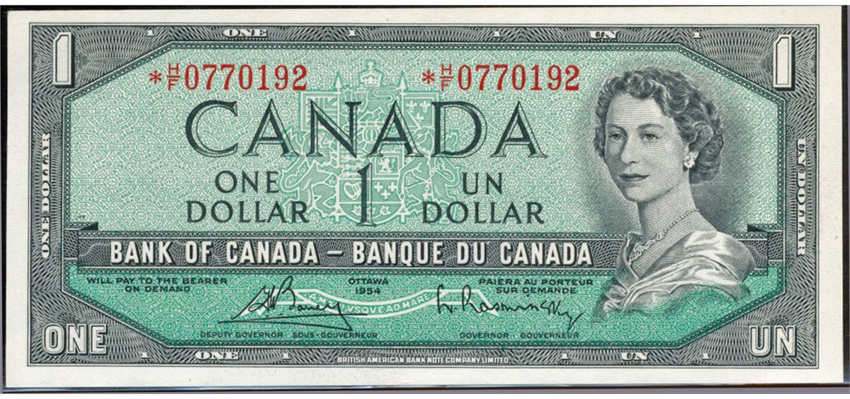 1954 $1 BC-37cA #*HF0770192, CCCS UNC65. Scarce prefix.