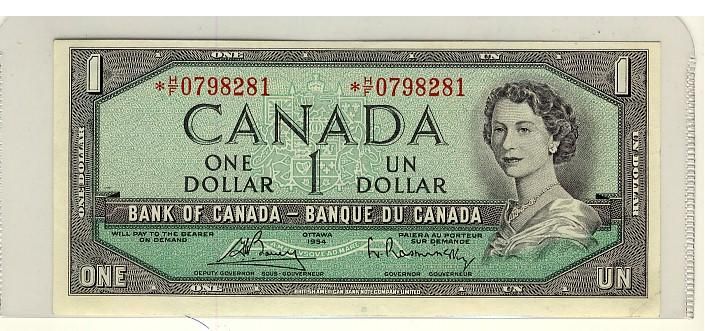 1954 $1 BC-37cA #*HF0798281. Scarcer prefix replacement issue. Lightly pressed EF to AU.