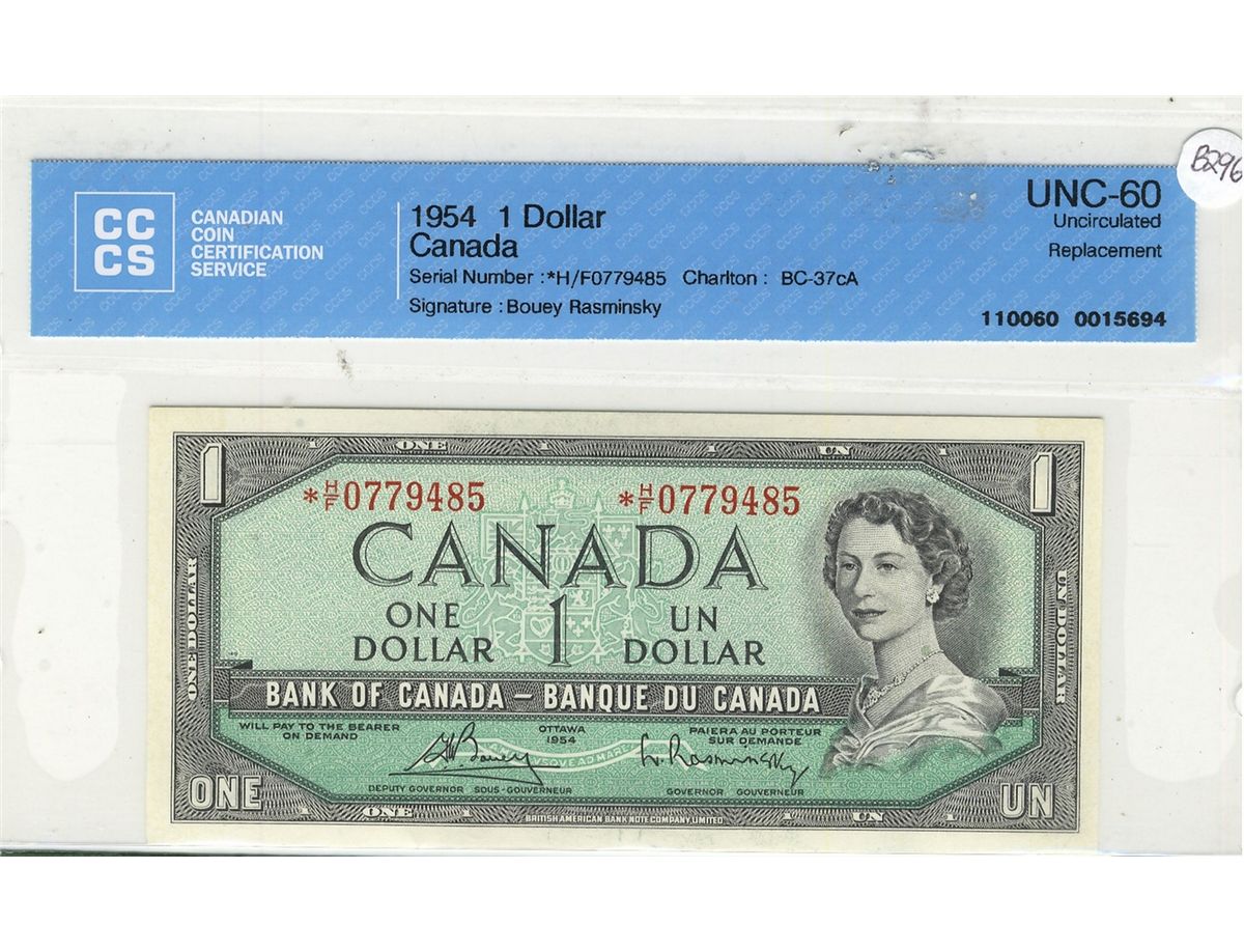 1954 $1 BC-37cA Replacement Scarce *H/F, CCCS UNC-60.
