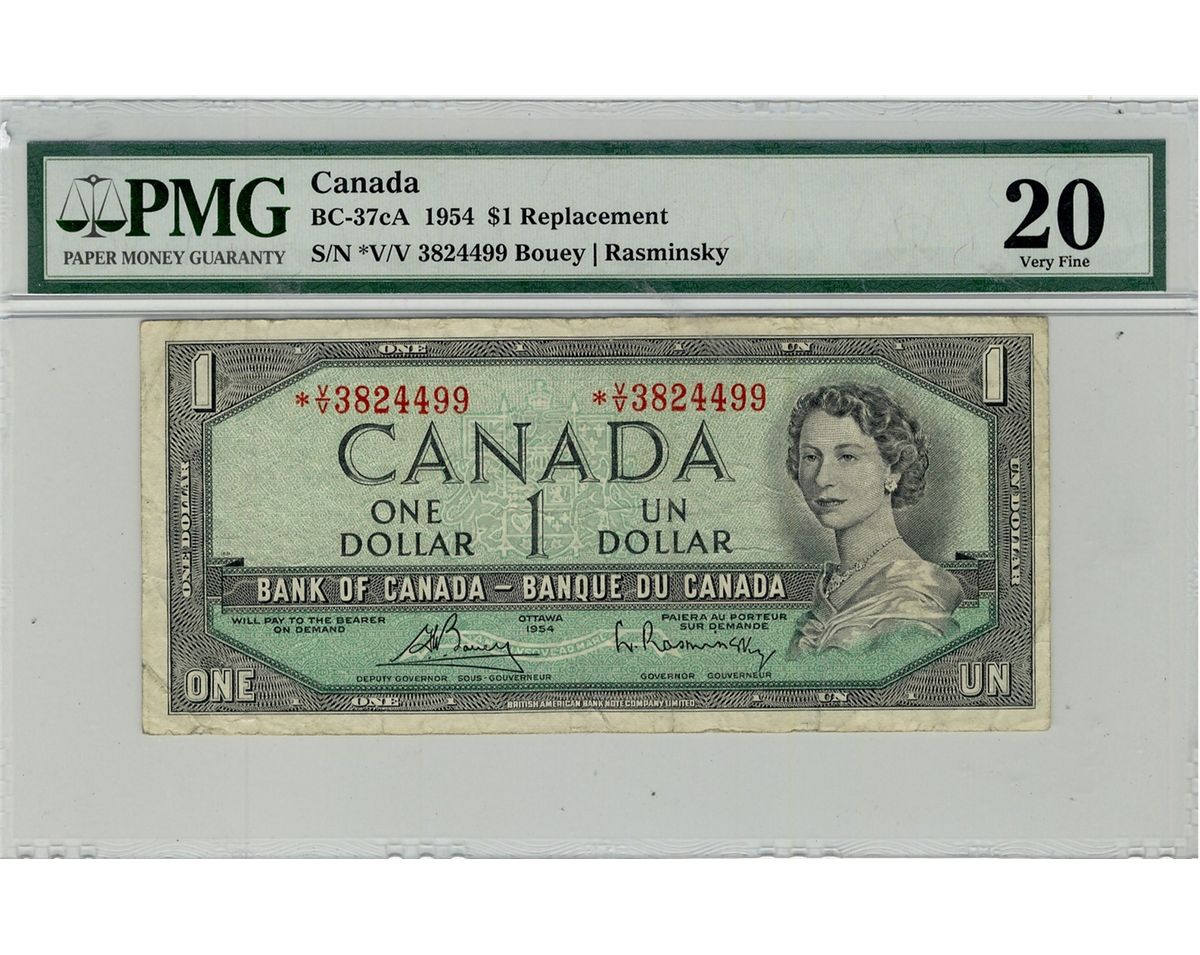 1954 $1 BC-37cA *V/V3824499 PMG VF20. RARE PREFIX.