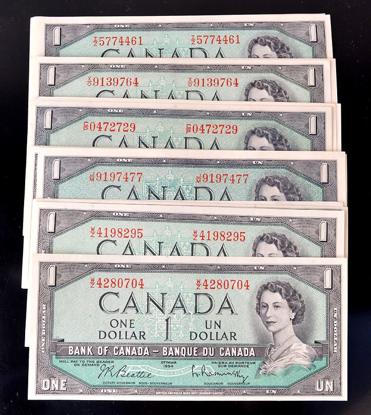 1954 $1, Beattie-Rasminsky, Unc, 34 pieces