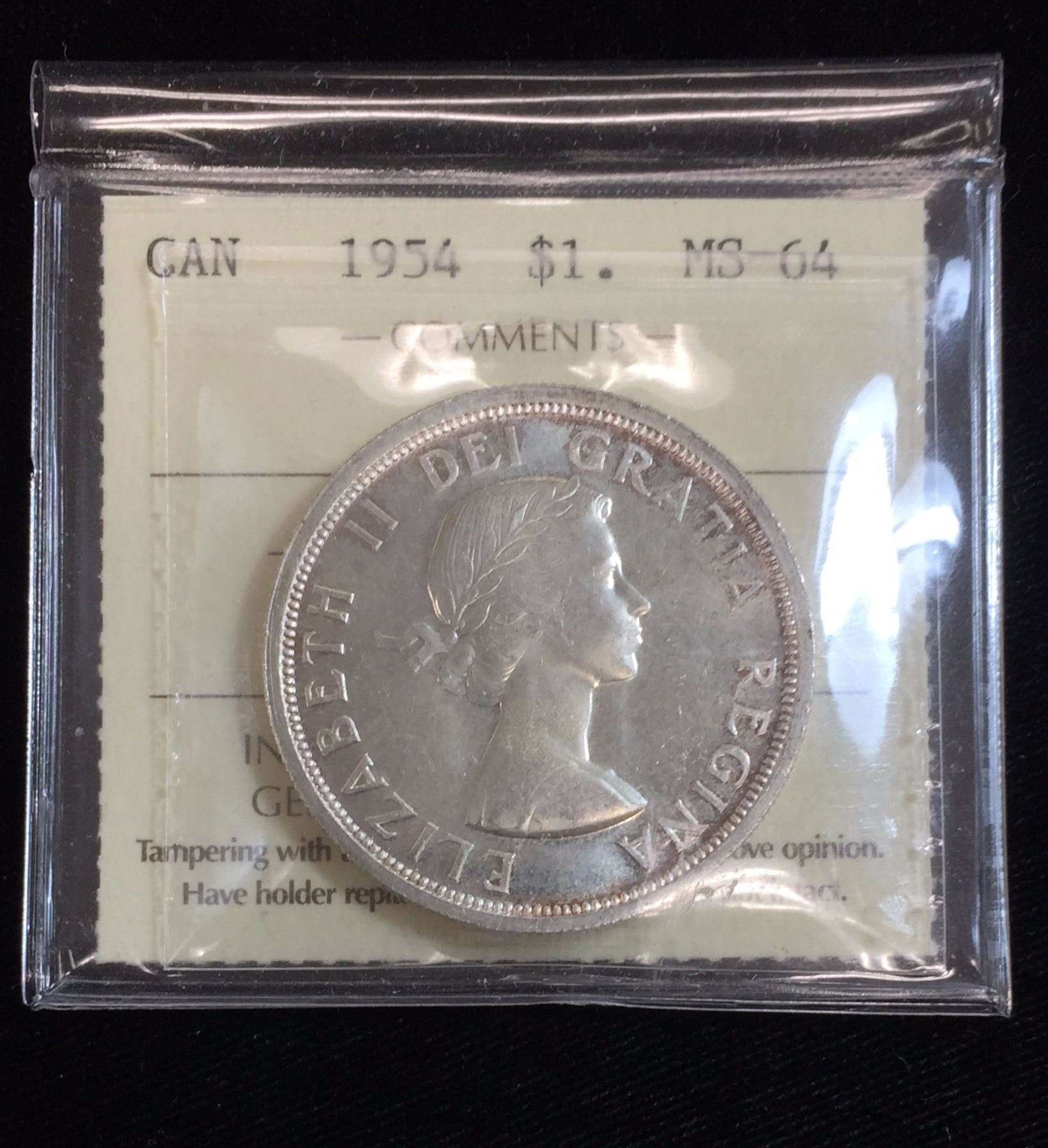 Lot 125 1954 One Silver Dollar, ICCS MS64