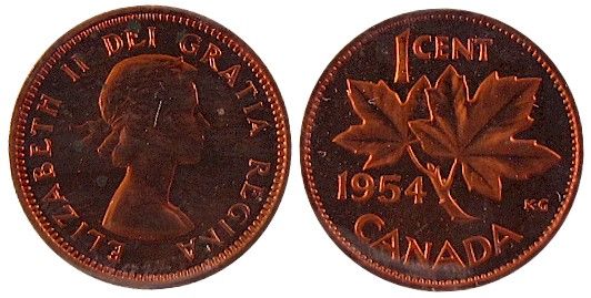 1954 1 Cent, ICCS PL64; NSF, Red.