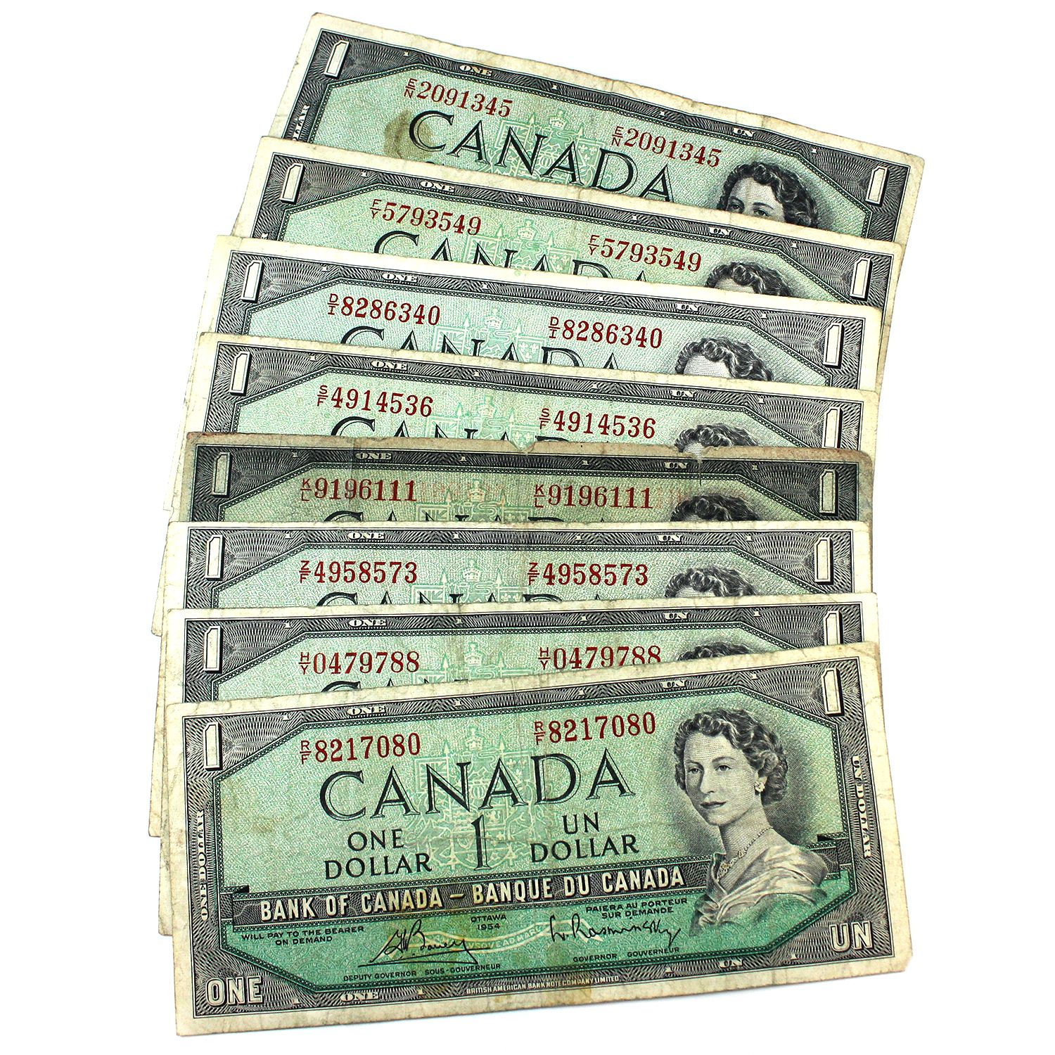 INCLUDES: BC37c Rasminsky SN: R/F8217080; BC-37b Rasminsky SN: H/Y0479788; BC-37d Bouey SN: Z/F4958573; BC-37a Coyne SN: K/L9196111; BC-37c Rasminsky SN: S/F4914536; BC-37d Bouey SN: D/I8286340; BC-37b Rasminsky SN: F/Y5793549 & BC-37a Coyne E/N2091345. 8pcs.