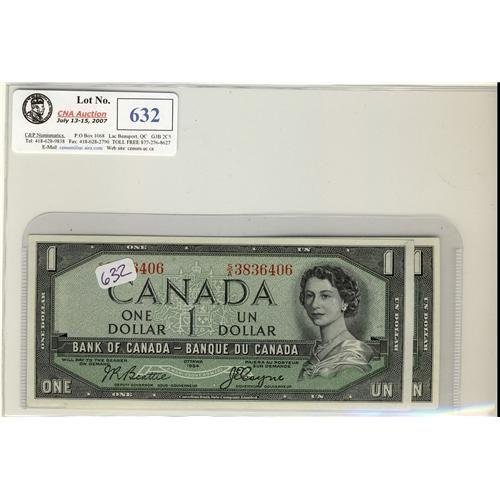 1954 $1 DF. BC-29b. Nice pair of UNC notes, both bright and well centered. #OA9612911 / NA19771811