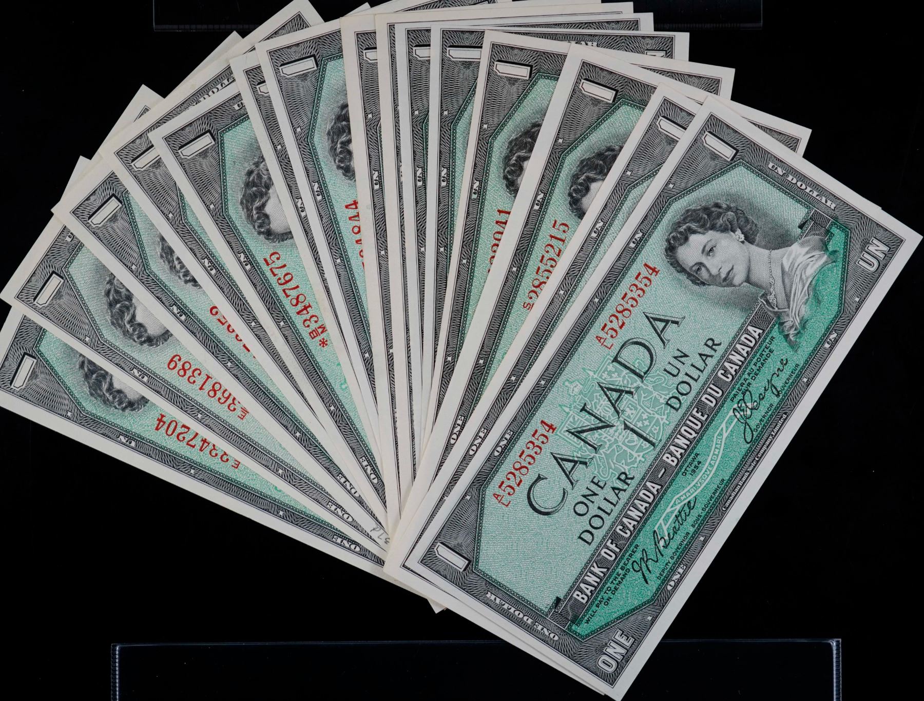 1954 $1 Lot; Includes Various signatures, replacements and better prefix. All AU to Unc, Lot of 15 notes.