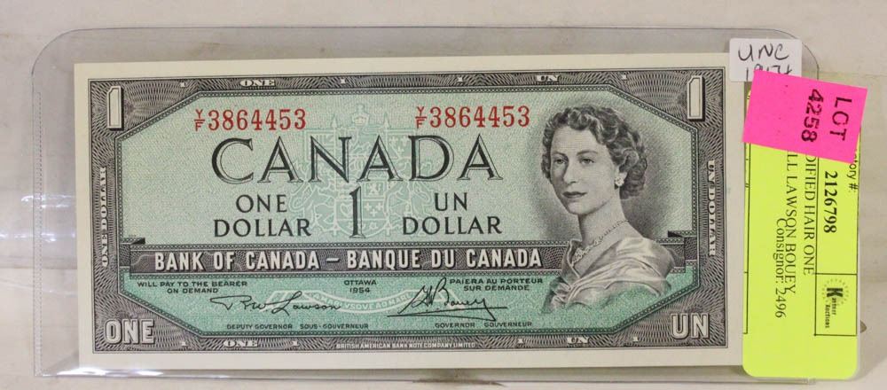 1954 $1 MODIFIED HAIR ONE DOLLAR BILL LAWSON BOUEY