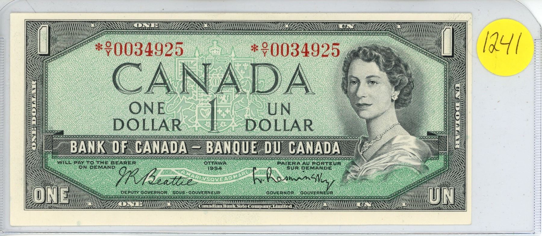 1954 $1 Modified Replacement Canada Bank Note - *O/Y Prefix UNC Condition