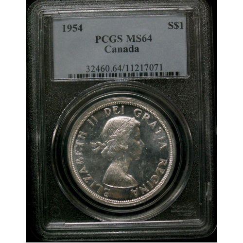 1954 $1 PCGS MS-64 The coin is fully struck and has full lustre.