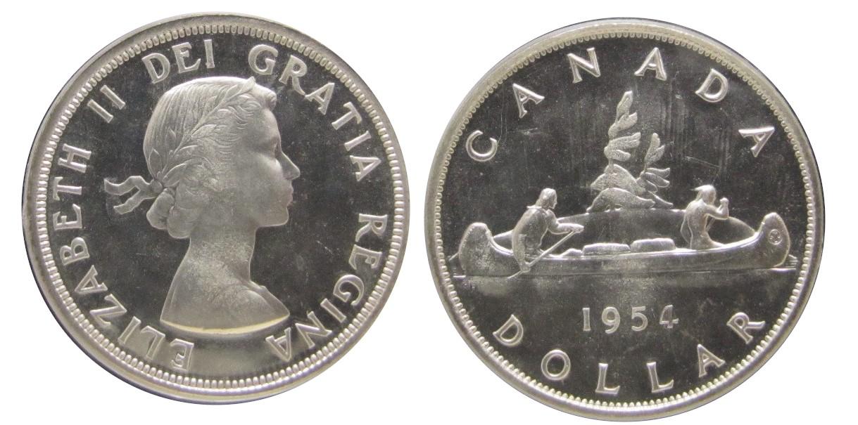 1954 $1 PCGS MS66. Pristine blast white example with Cameo finish.