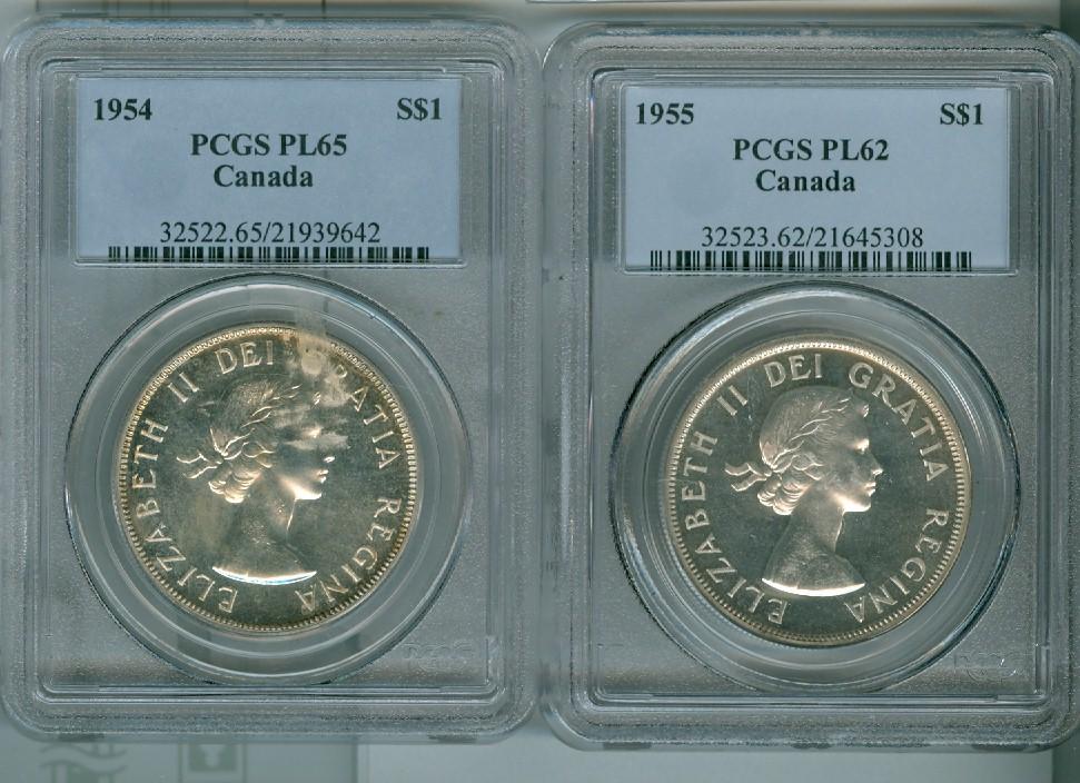 1954 $1 PL65 & 1955 PL62 $1. Lot of 2 coins both PCGS graded.