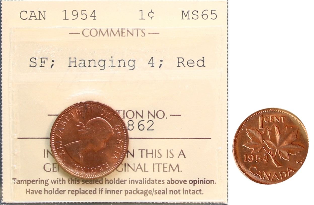 1954 1¢ SF; Hanging "4" ICCS Gem Mint State-65 Red