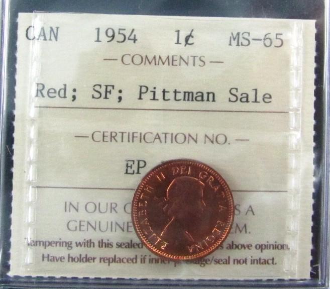 1954 1¢ SF ICCS MS65RD. Ex Pittman example.
