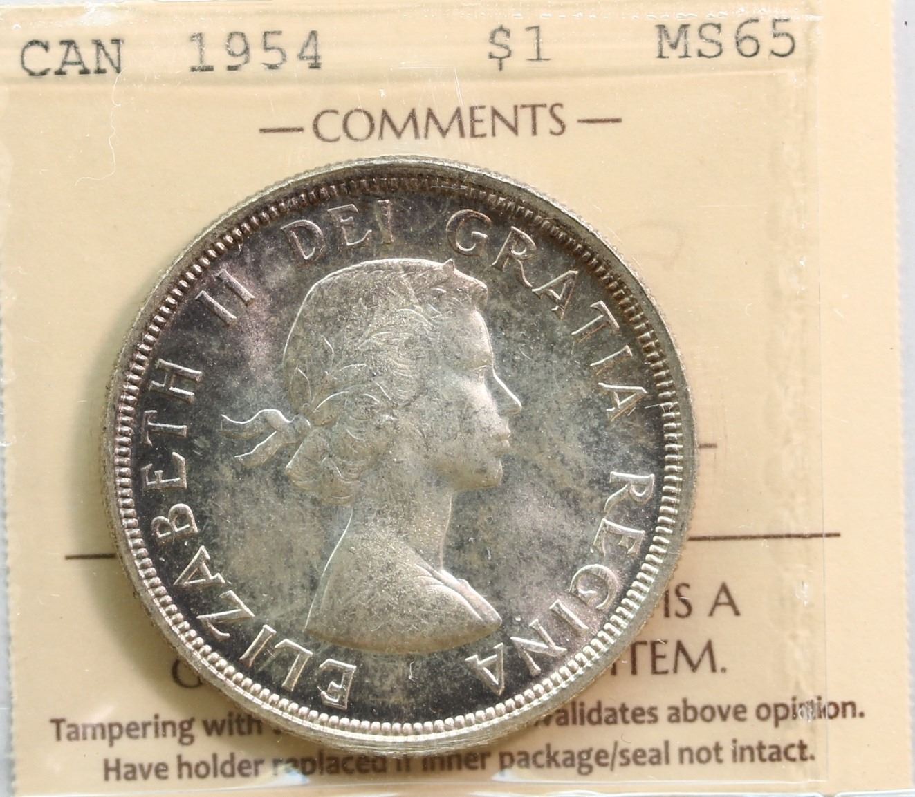 1954 $1 "SWL" ICCS Gem Mint State-65 Attractive example with just a touch of russet tone.
