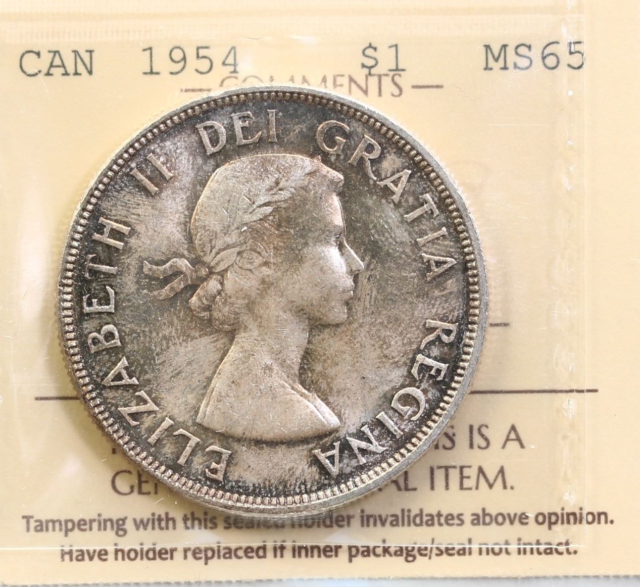 1954 $1 "SWL" ICCS Gem Mint State-65 Superb gold and russet tones over full underlying lustre.