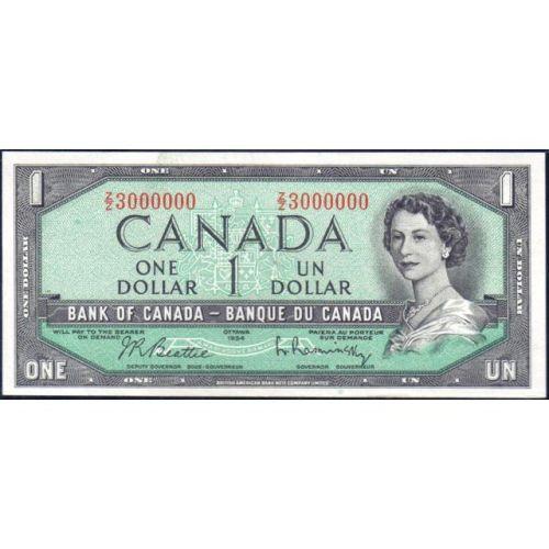 1954 One Dollar Bouey-Rasminsky, BC-37c Million Serial Number Z/Z3000000, PMG Choice Uncirculated 64 Exceptional Paper Quality