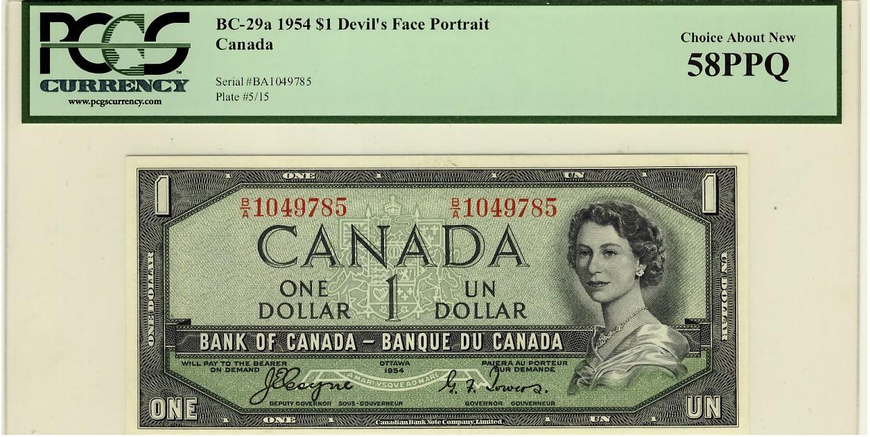 1954 $1 devil's face BC-29a B/A 1049785 PCGS 58 PPQ