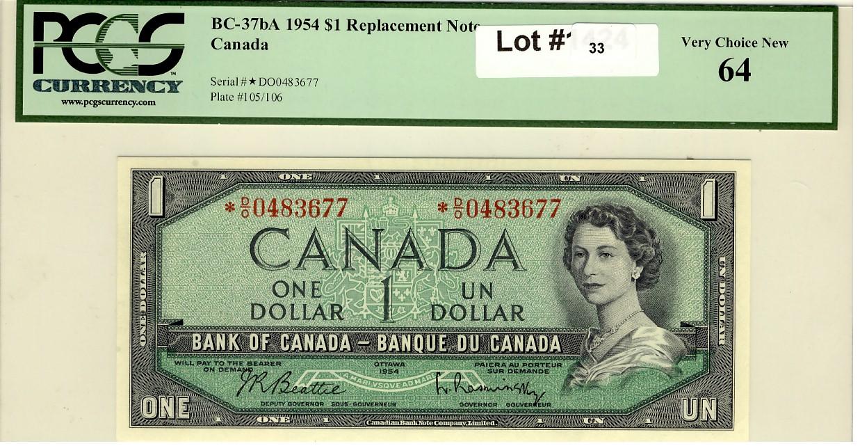 1954 $1 mod.repl. BC-37bA *D/O 0483677 PCGS 64