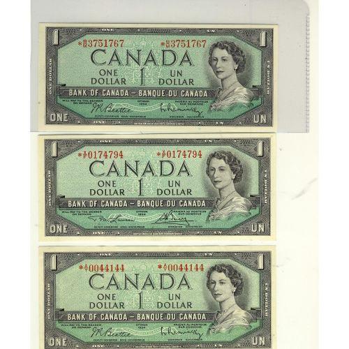 1954 $1 replacement issues. Lot of 3 notes including BC-37bA *AY, BC-37ba-i *BM and BC-37dA *XF. Grades EF to UNC