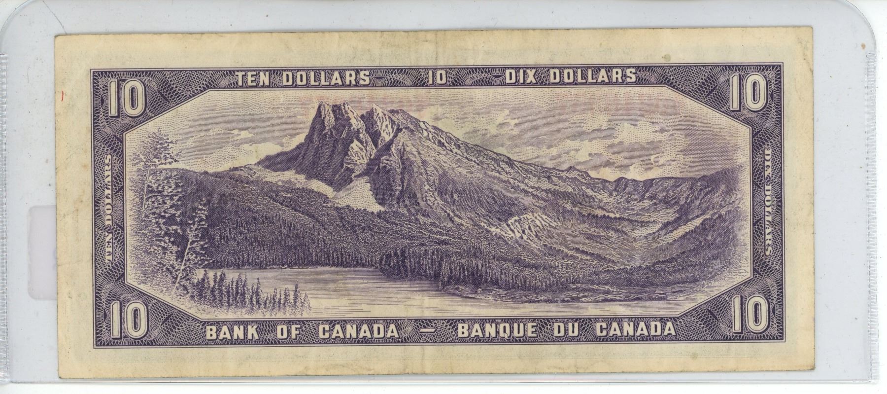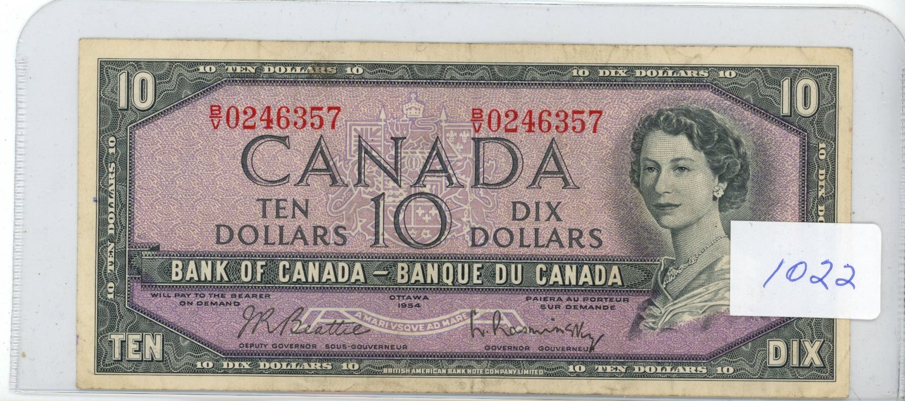1954 - $10.00 Note #BV02463557 signed by JR Beattie & L Rasminsky -VG