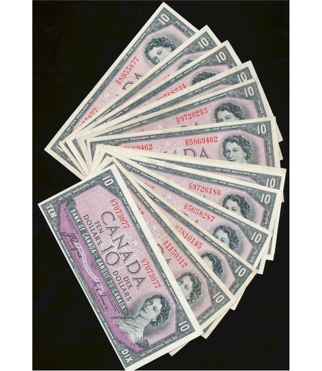 1954 $10 BC-32a & BC-32b Lot; includes 13 pcs VF to EF for grades.