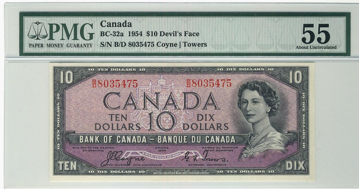 1954 $10 BC-32a #BD8035475, PMG AU55.