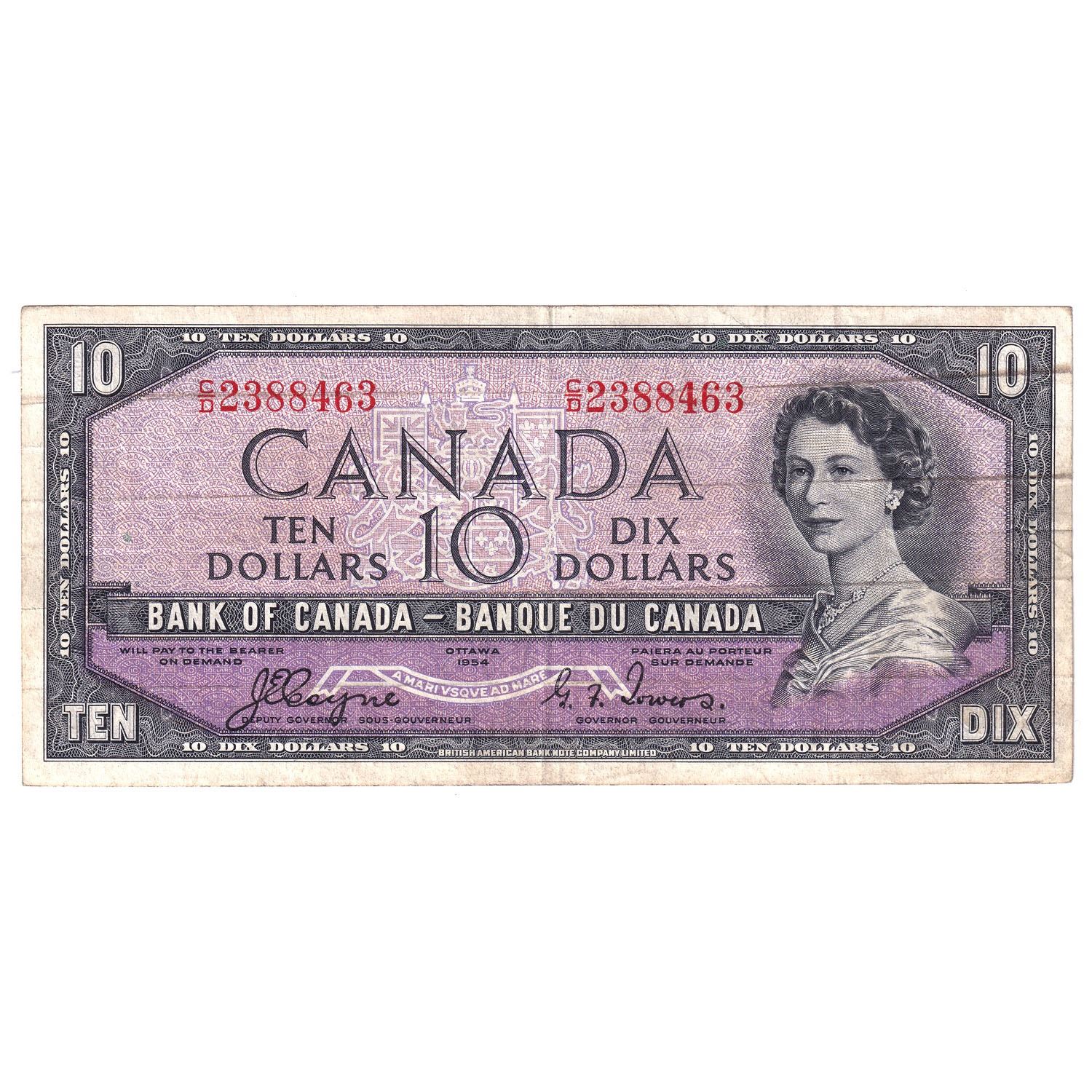 1954 $10 BC-32a Bank of Canada, Coyne-Towers, C/D2388463, VF. Note contains some staining and '49' written on the back.