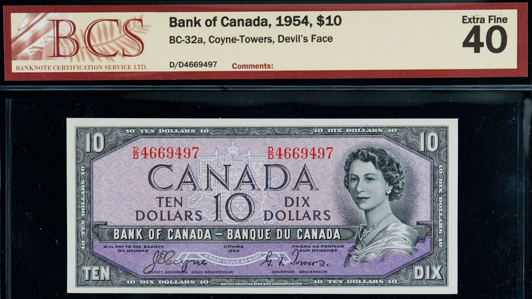 1954 $10 BC-32a #D\D4669497 BCS Extra Fine-40. Devil's face