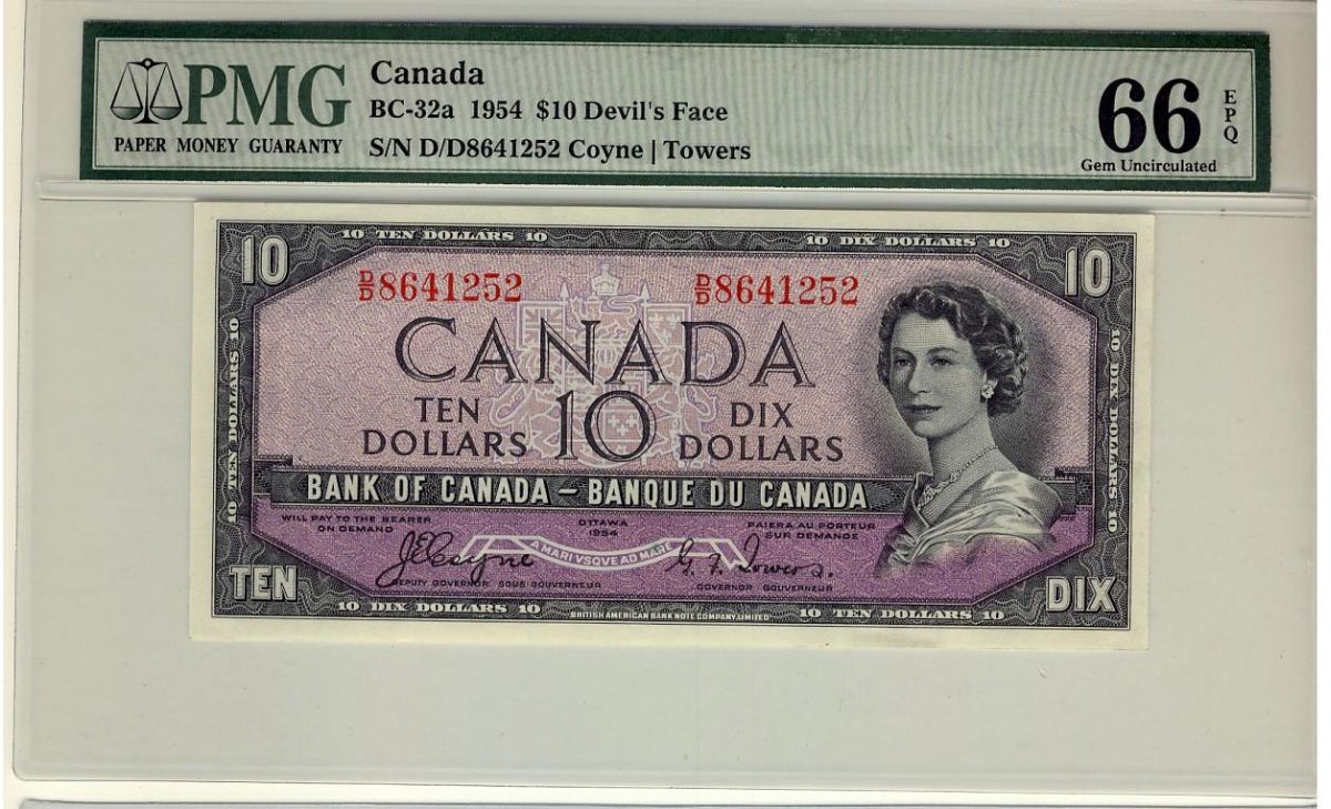 1954 $10 BC-32a #DD8641252 PMG Gem UNC66 EPQ.