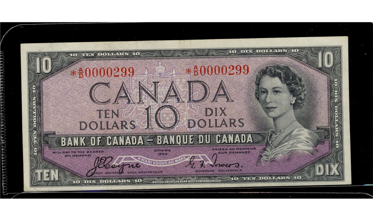1954 $10 BC-32aA #*AD0000299. Rare $10 DF replacement issue. A nice problem free VF issue.