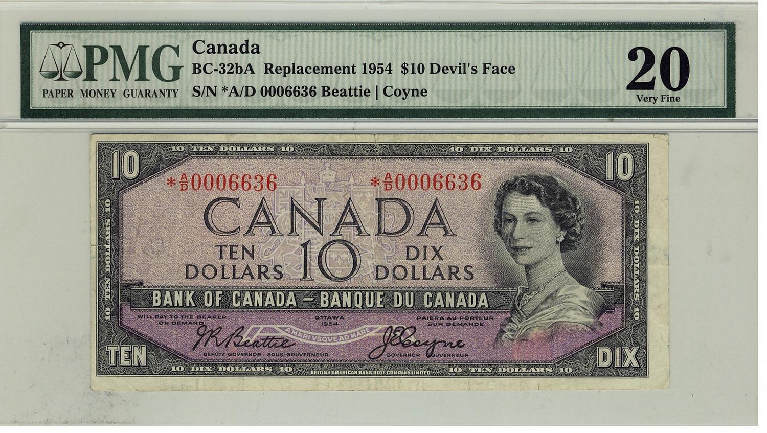 1954 $10 BC-32bA #*AD0006636, PMG VF20. Rare replacement.