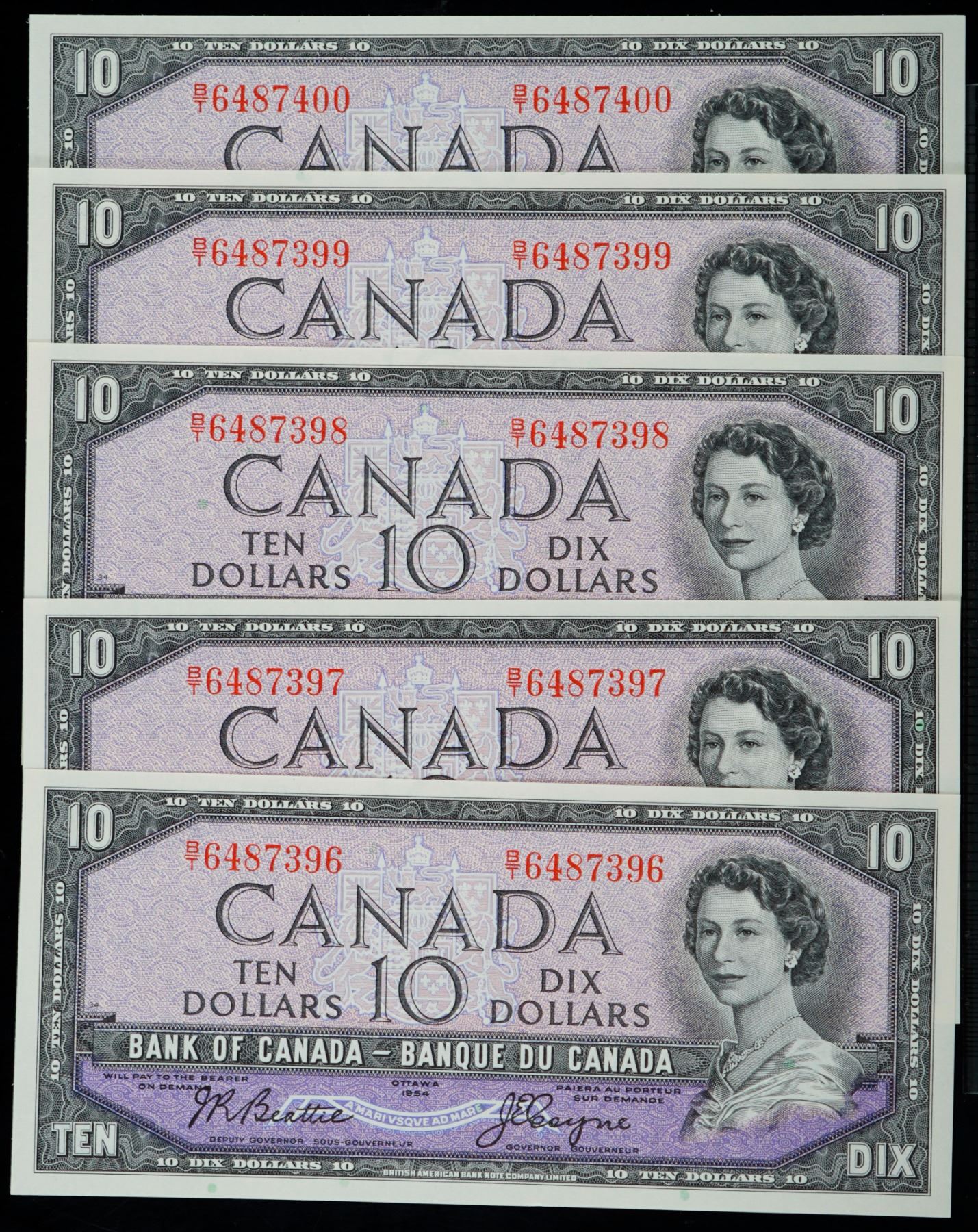 1954 $10 BC-40a #B/T6487396-7400 Lot of 5 consecutive notes Gem Uncirculated or better.
