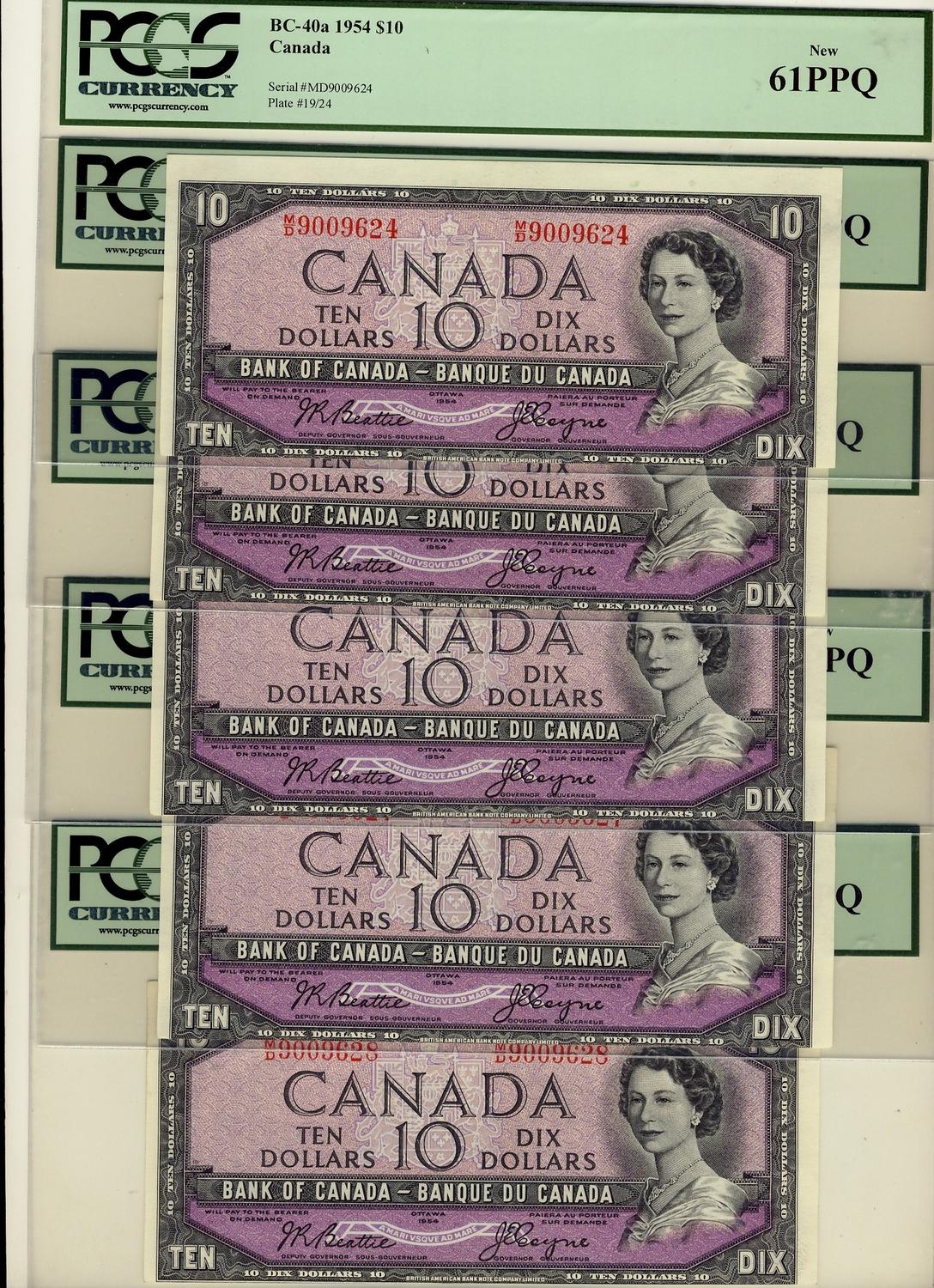 1954 $10 BC-40a #MD9009624-628. Lot of 5 consecutive notes all PCGS UNC 61PPQ. OUT OF REGISTER.