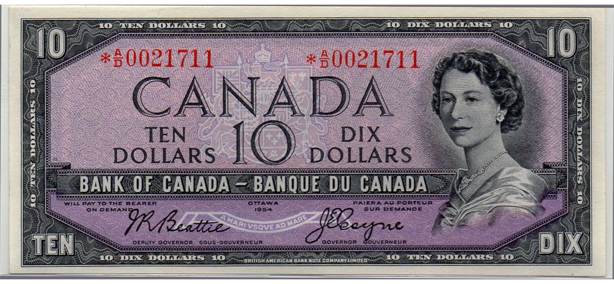 1954 $10 BC-40aA #*AD0021711, CCCS Gem UNC66.