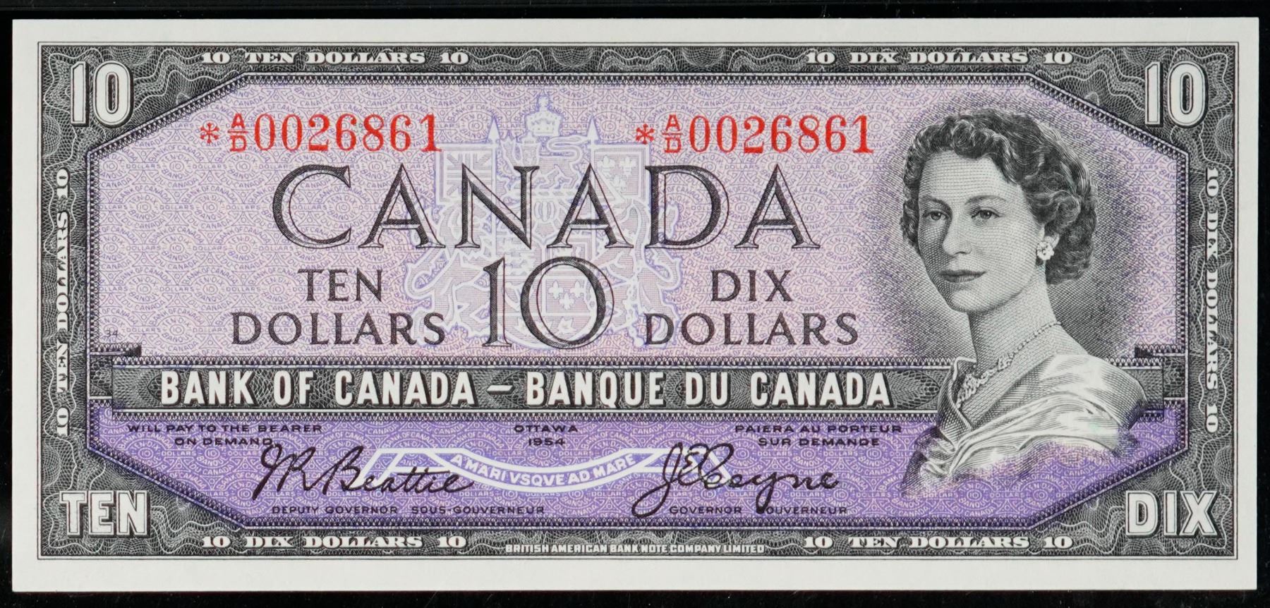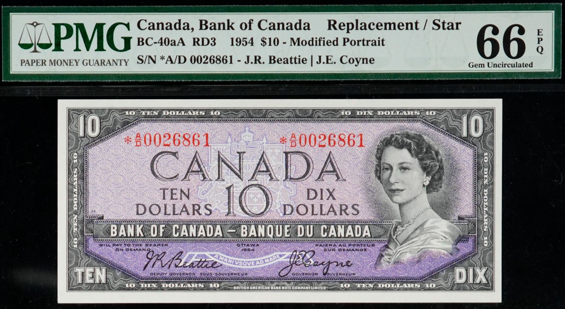 1954 $10 BC-40aA #*AD0026861, PMG Superb Gem Uncirculated-66EPQ. A superb example with great centering and exceptional paper quality.