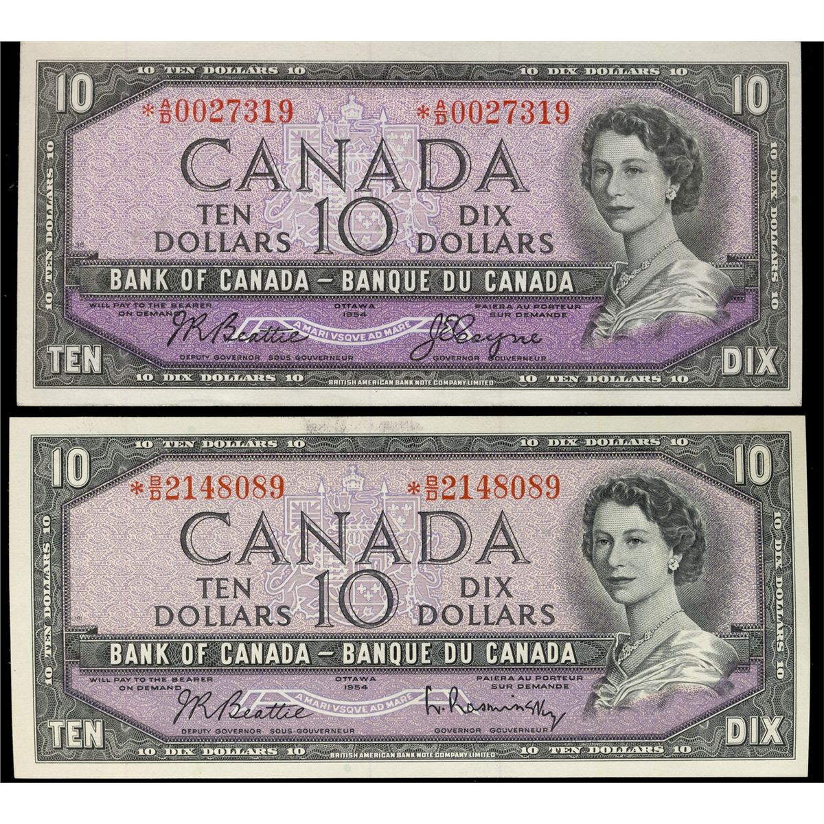 1954 $10 BC-40aA #*AD0027319 & BC-40bA #*BD2148089. Lot of 2 coins Original EF+.