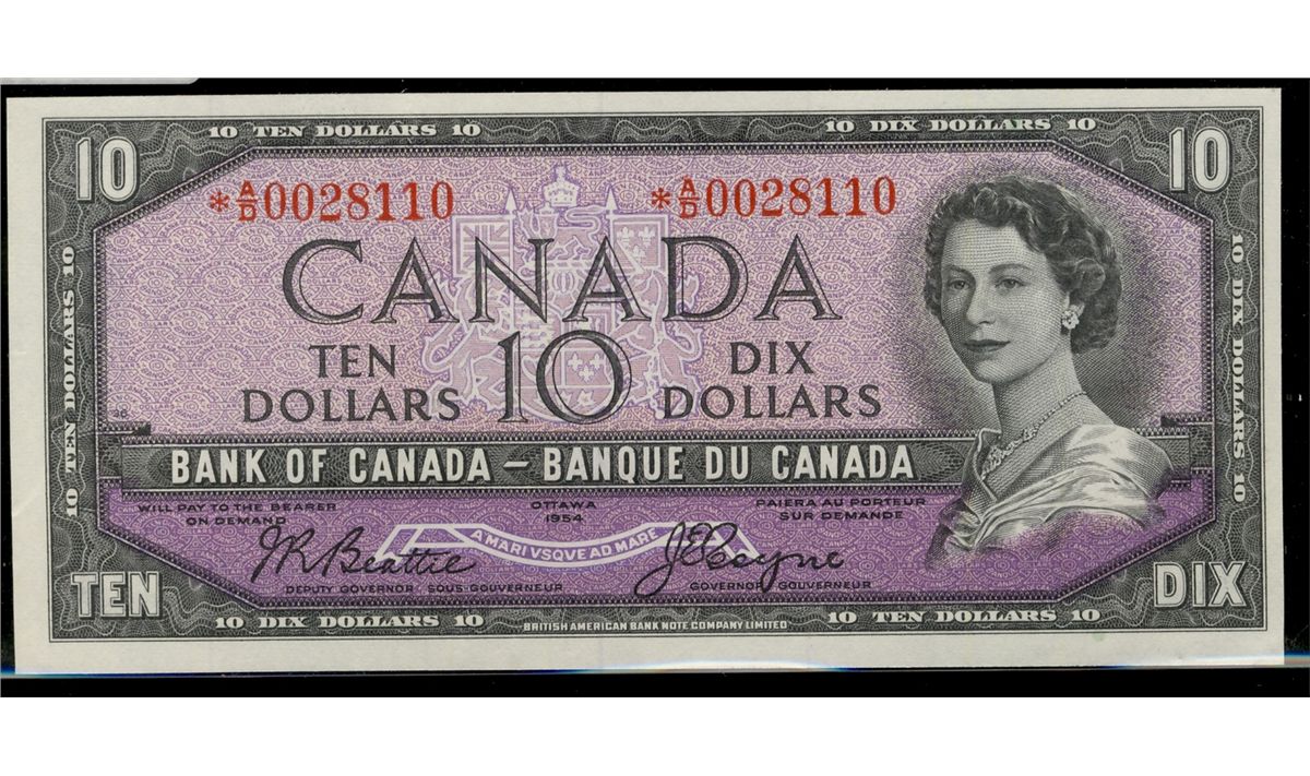 1954 $10 BC-40aA #*AD0028110. Crisp UNC issue.