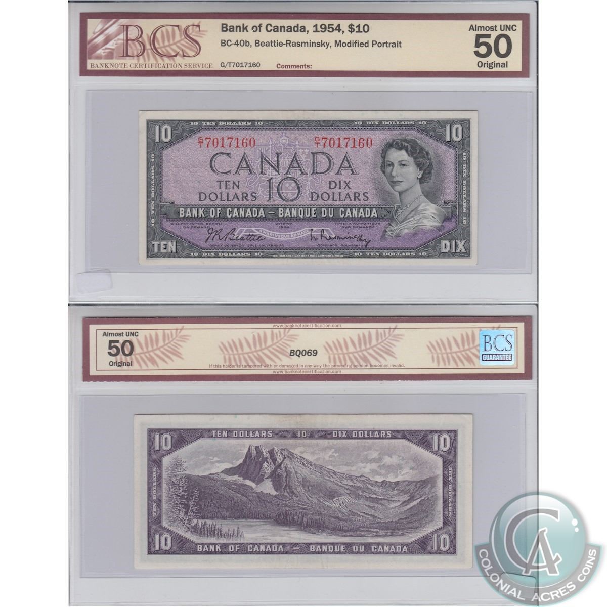 1954 $10 BC-40b Bank of Canada Beattie-Rasminsky Modified Portrait Note BCS Certified AU-50