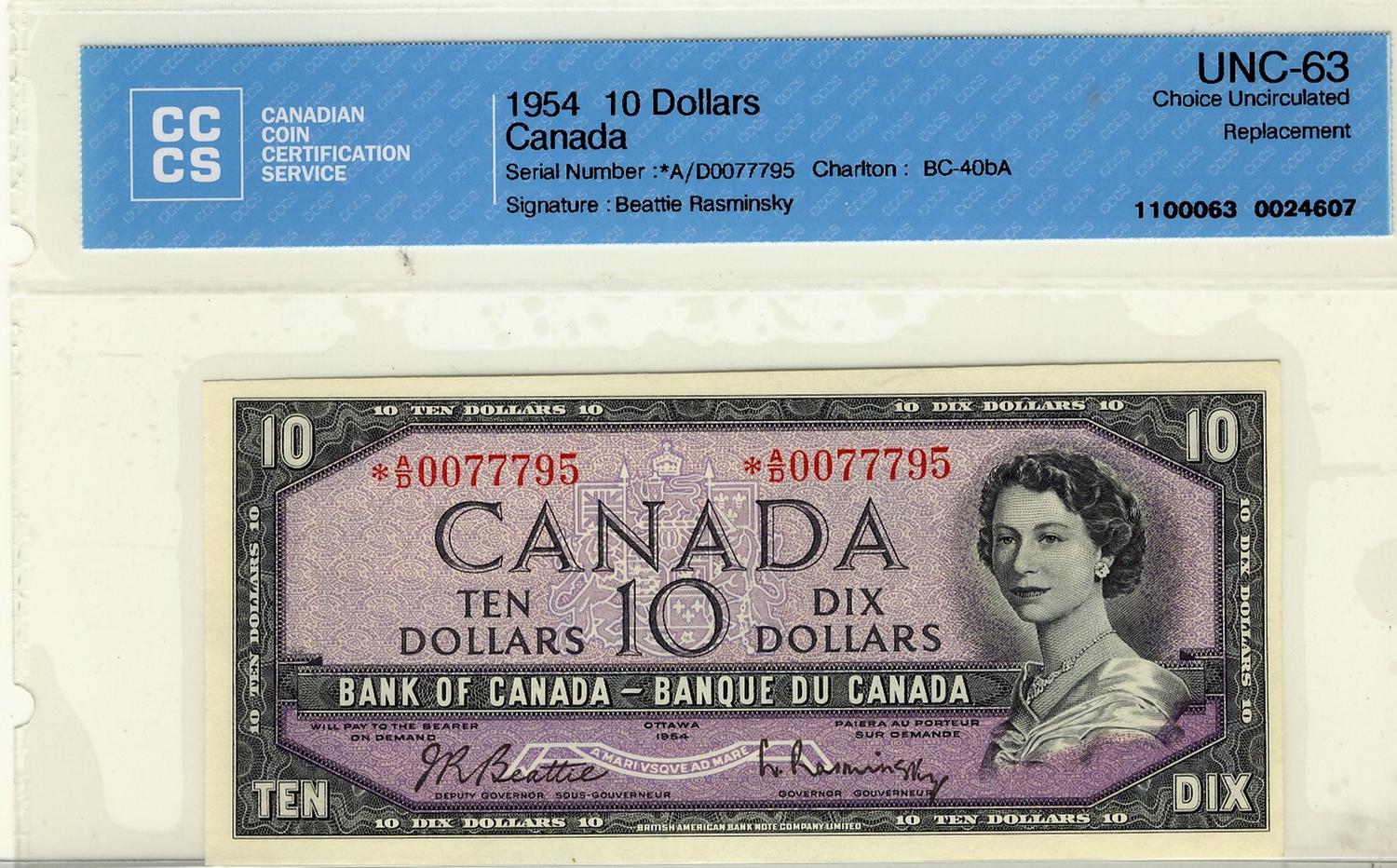 1954 $10 BC-40bA *A/D0077795 CCCS UNC63