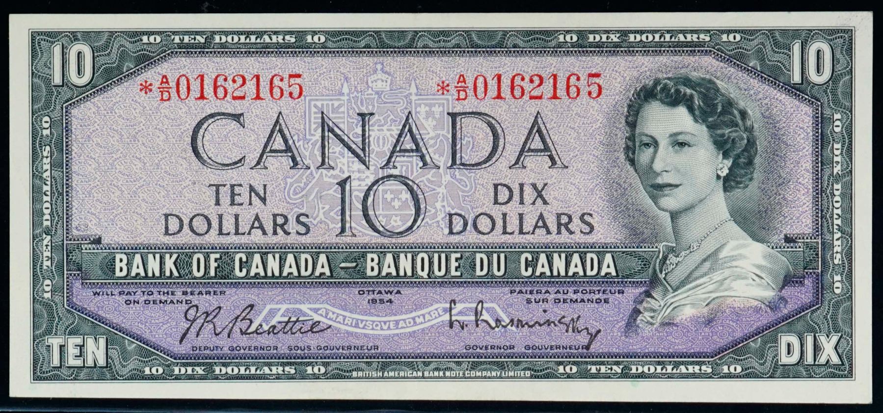 1954 $10 BC-40bA #*A/D0162165 EF-AU, Better replacement note.