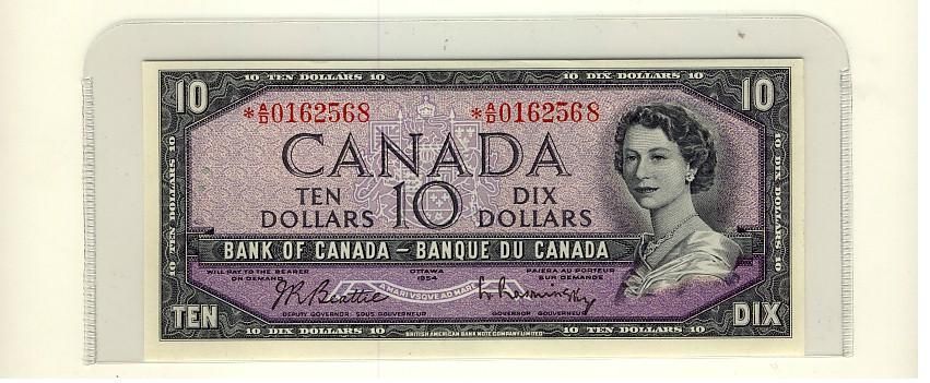 1954 $10 BC-40bA #*AD0162568. Original AU/UNC note. Scarcer prefix.
