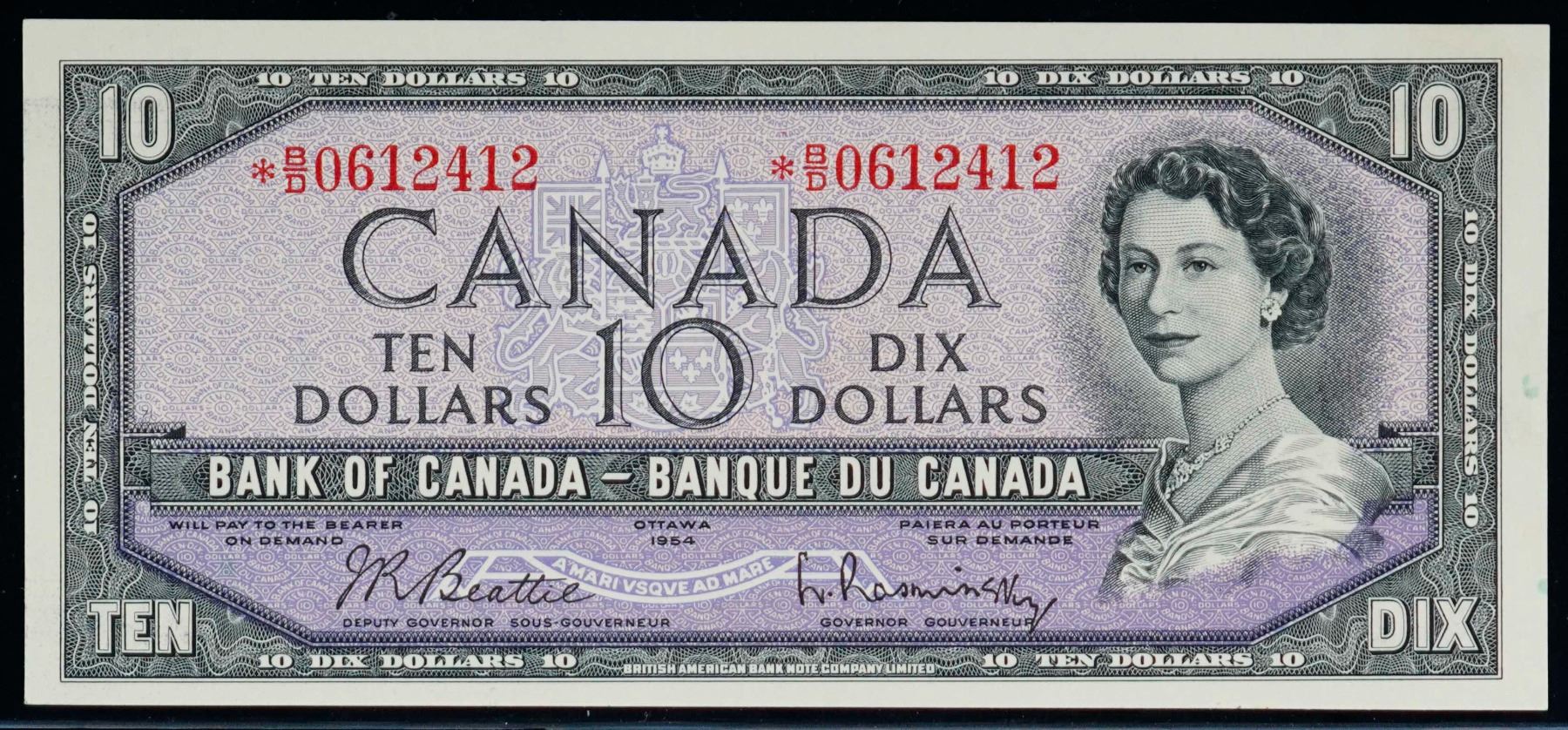1954 $10 BC-40bA #*B/D0612412 AU-UNC, Replacement note.