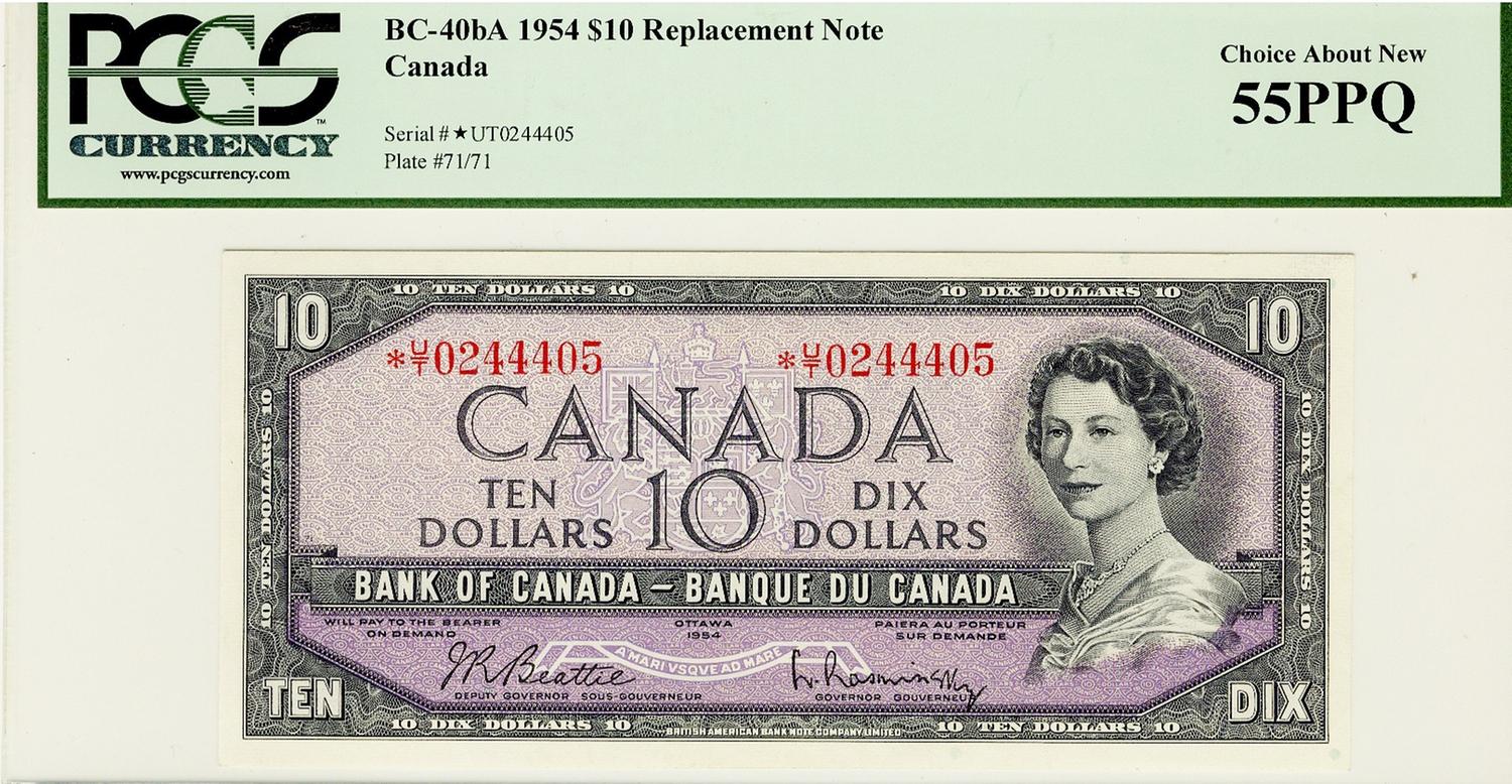1954 $10 BC-40bA #*UT0244405 PCGS CH AU55PPQ. Scarce replacement note.