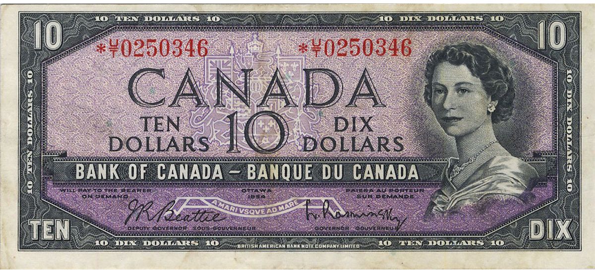 1954 $10 BC-40bA #*UT0250346 BCS EF45.