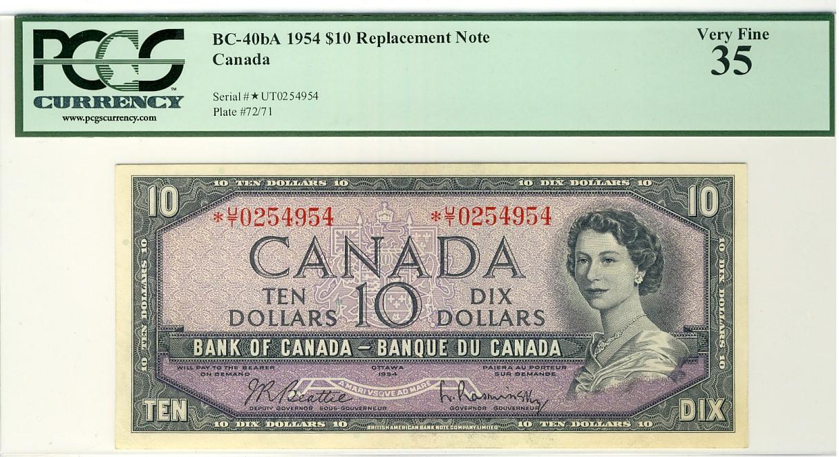1954 $10 BC-40bA #*UT0254954, PCGS VF35. Rare replacement issue in above average gade.